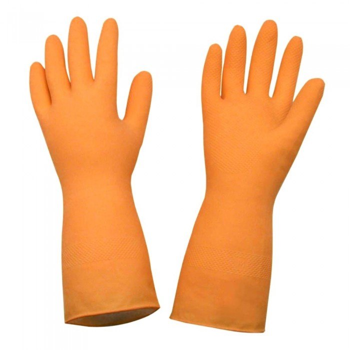 Luva de segurança confeccionada em látex de borracha natural; forrada internamente com flocos de algodão; com