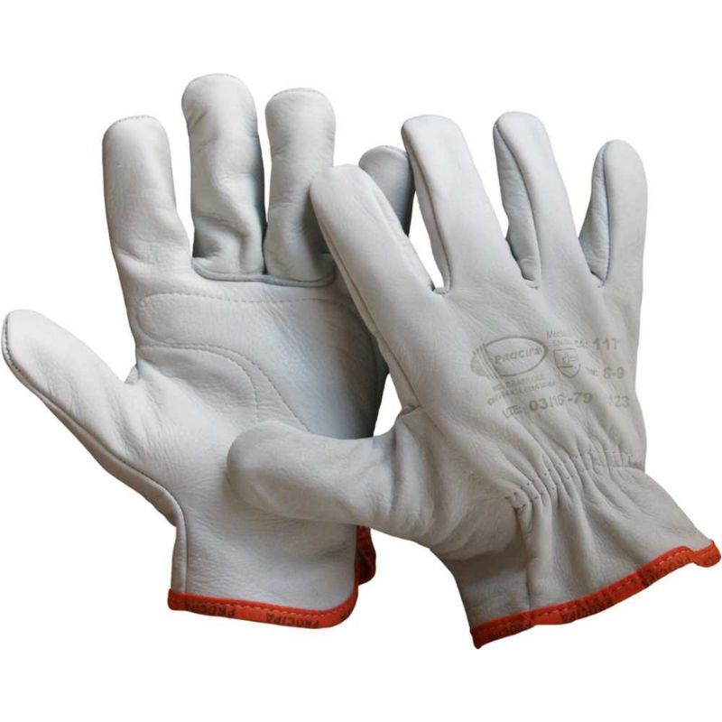 Luva de segurança confeccionada 100% em vaqueta, reforço de costura nos dedos polegar, médio e anelar, elástico no dorso para ajuste.