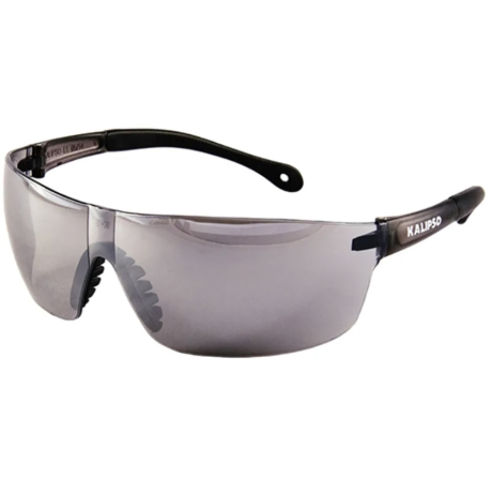 Óculos Kalipso Pallas trata-se de um óculos de segurança com armação e visor confeccionado em uma única peça de policarbonato incolor, com revestimento externo de filme prateado espelhado e cinza com revestimento externo de filme prateado espelhado, possui cinco pinos localizados na posição do nariz, utilizados para o encaixe do apoio nasal de plástico maleável , confeccionadas do mesmo material do visor e com acabamento emborrachado.