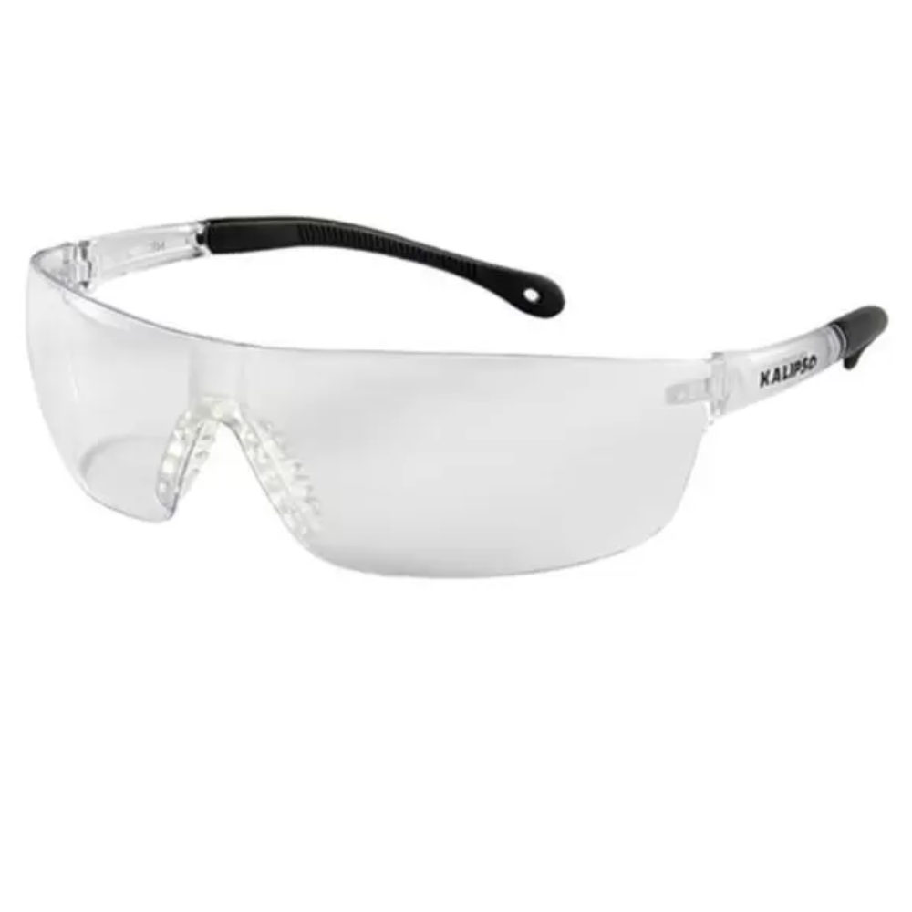 Óculos Kalipso Pallas trata-se de um óculos de segurança com armação e visor confeccionado em uma única peça de policarbonato incolor, com revestimento externo de filme prateado espelhado e cinza com revestimento externo de filme prateado espelhado, possui cinco pinos localizados na posição do nariz, utilizados para o encaixe do apoio nasal de plástico maleável , confeccionadas do mesmo material do visor e com acabamento emborrachado.