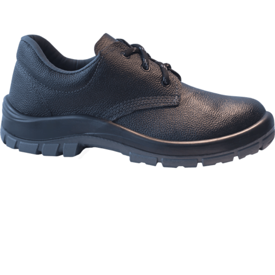 Sapato solado PU bidensidade, confeccionada em couro curtido, forração interna, fechamento em cadarço com ponta resinada, ilhós metálicos, solado PU, palmilha antibactérias fixada pelo sistema strobel e palmilha antimicróbios removível, com bico de Aço.